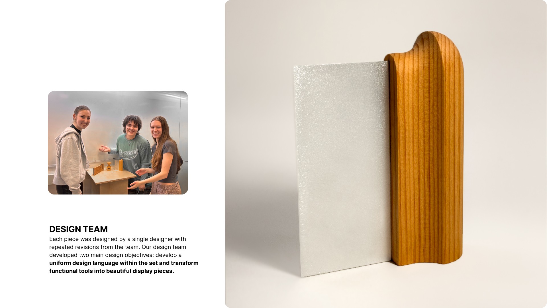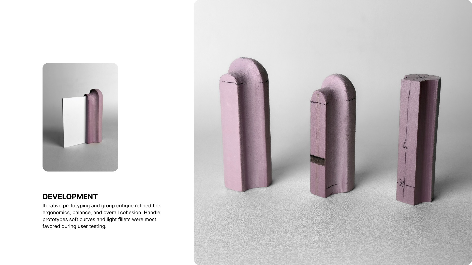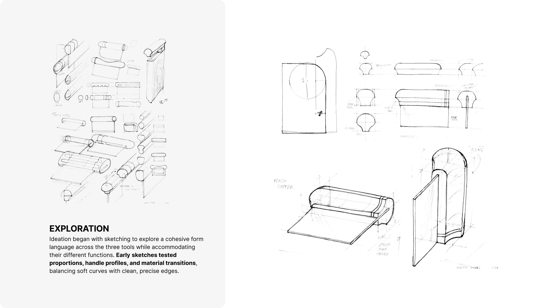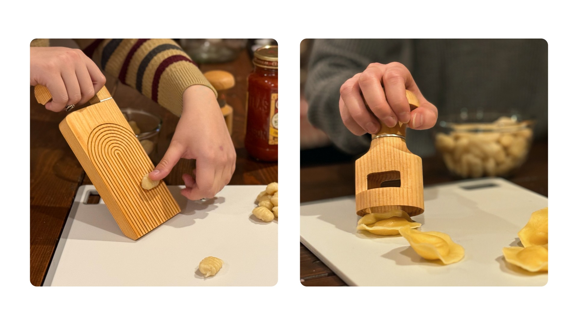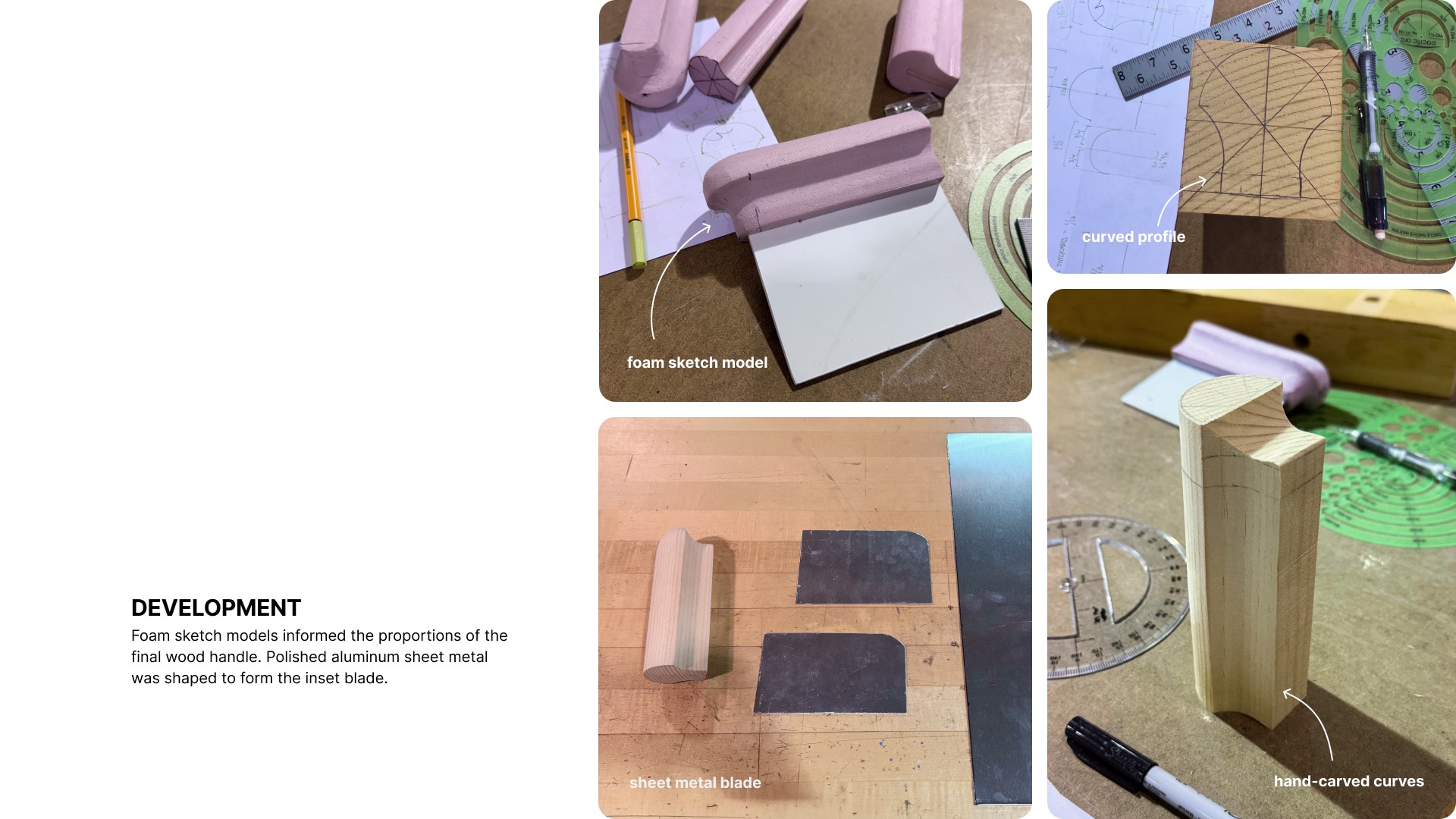 Aria is a three-piece pasta-making set designed to be both functional and display-worthy. The project emphasized material honesty, using wood for primary touchpoints with subtle metal accents to highlight structure and detail. Within the set, the bench scraper focuses on balance, edge precision, and tactile comfort.
